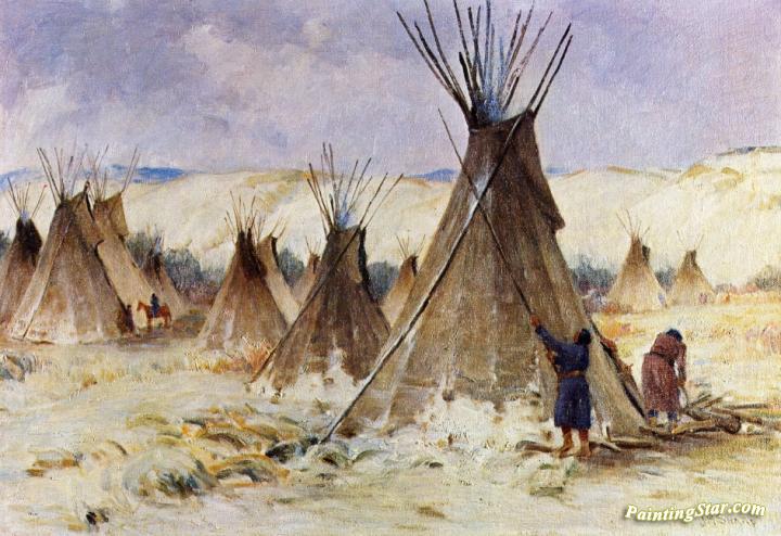 Early Winter On Crow Reservation, Montana, Art Painting by Joseph Henry Sharp