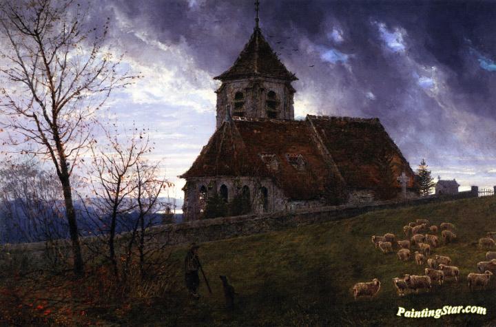Église De Chelles, Le Soir, Art Painting by Edwin Deakin
