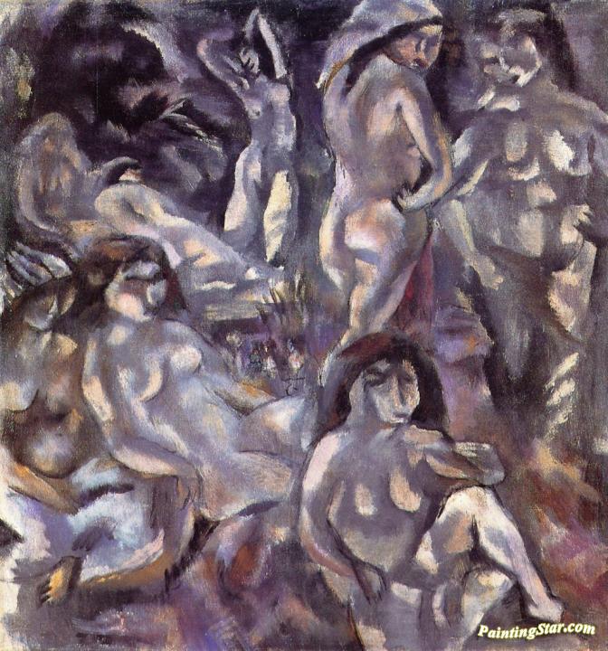 Eight Woman around a Landscape, Art Painting by Jules Pascin