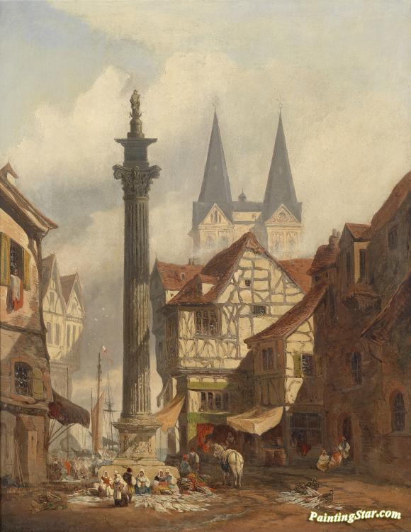 Eine Stadtansicht Mit Fischmarkt, Art Painting by George Clarkson Stanfield