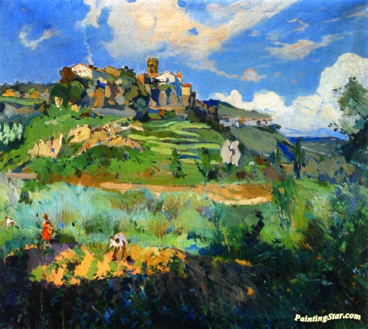 El Pueblo, San Quirce de Valles, Art Painting by Joaquin Mir Trinxet