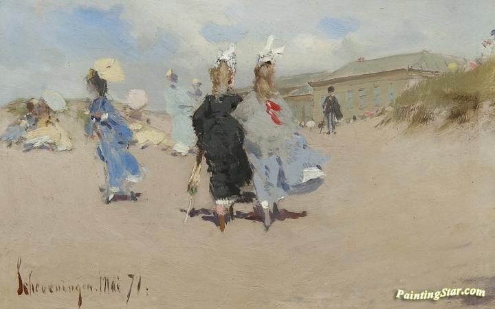 Elegant ladies at the Scheveningen Beach, Art Painting by Frederik Henrdik Kaemmerer