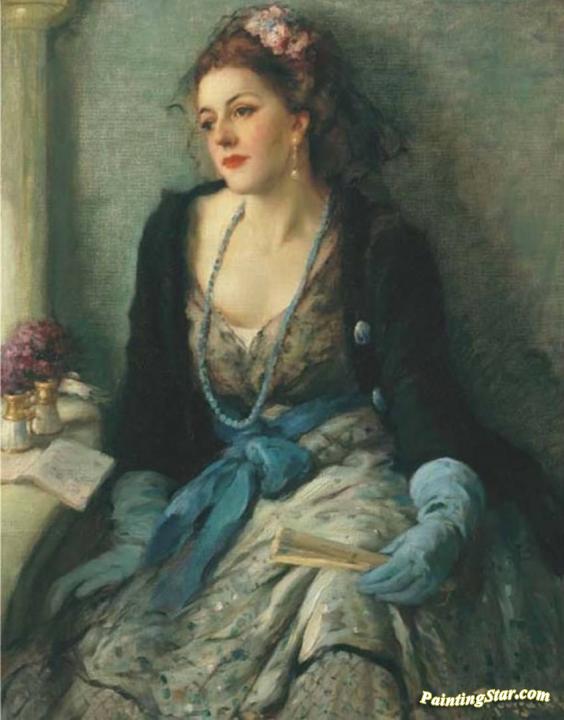 Elegant lady at the opera, Art Painting by Fernand Toussaint