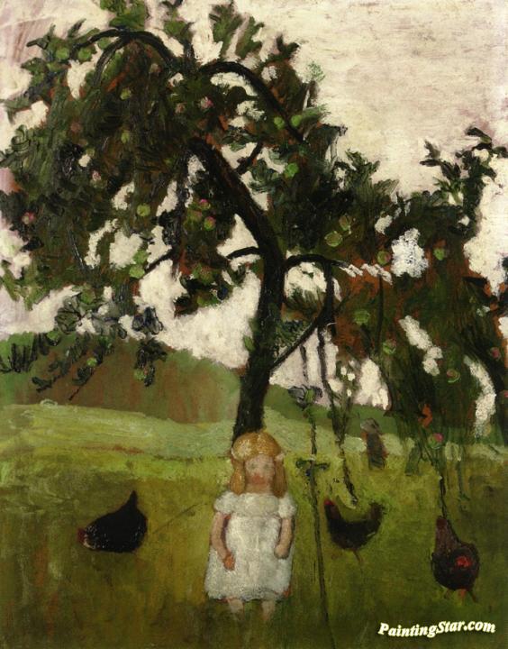 Elizabeth with Hens under an Apple Tree, Art Painting by Paula Modersohn-Becker