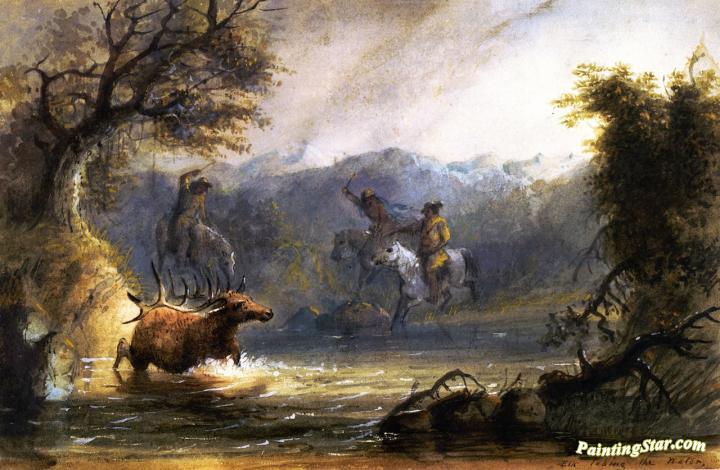 Elk Taking the Water, Art Painting by Alfred Jacob Miller