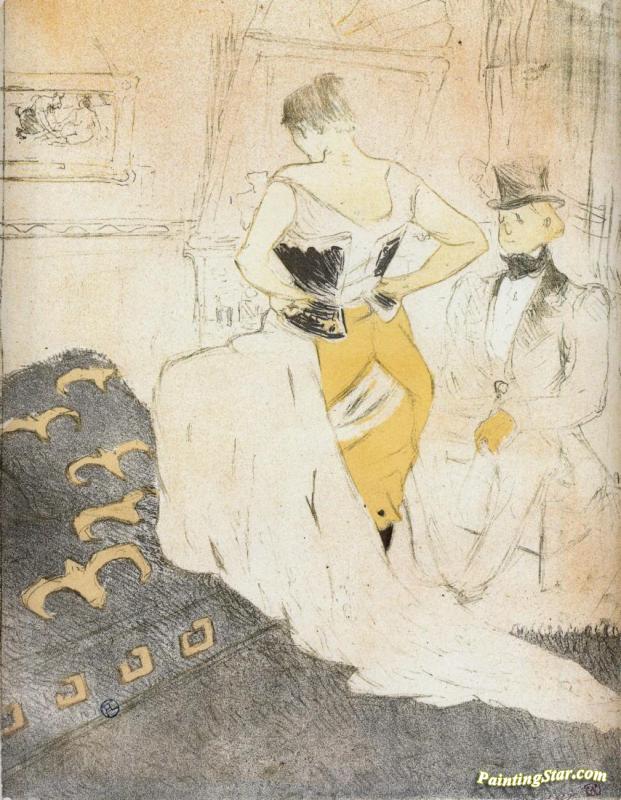 Elles: Woman Fastening A Corset, Passing Conquest, Art Painting by Henri de Toulouse-Lautrec
