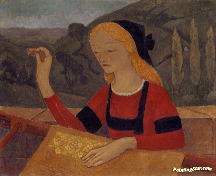 Embroiderer in a Landscape of Chateauneuf, Art Painting by Paul Serusier