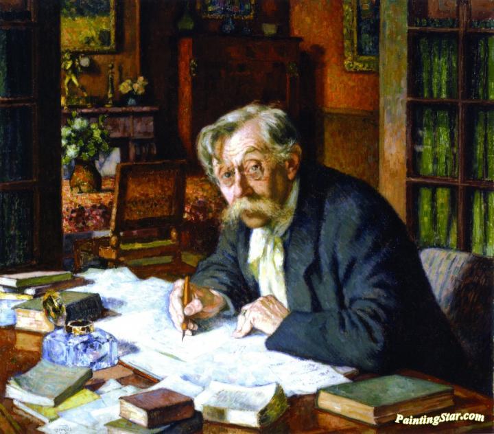 Emile Verhaeren Writing, Art Painting by Theo van Rysselberghe