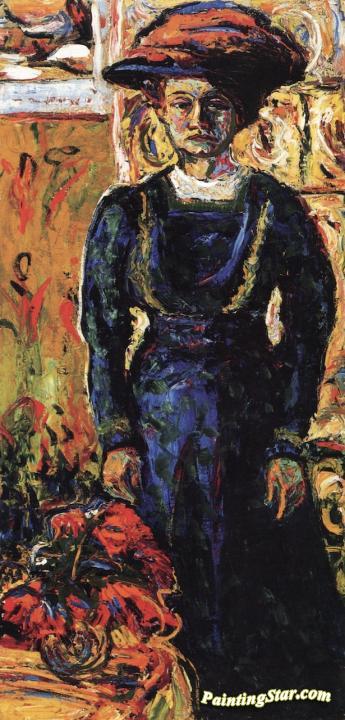 Emmy Frisch with Red Flowers, Art Painting by Ernst Ludwig Kirchner