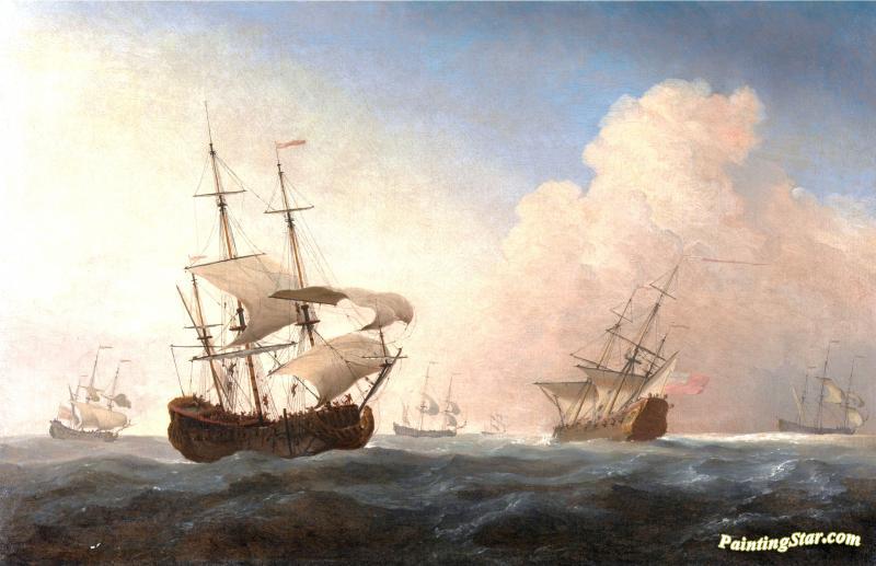English Warships Heeling In The Breeze Offshore, Art Painting by Willem van de Velde the Younger