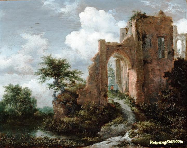 Entrance Gate of the Castle of Brederode, Art Painting by Jacob van Ruisdael