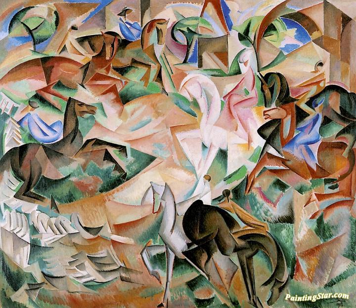 Equestrian Fantasy With Pink Lady, Art Painting by Alice Bailly