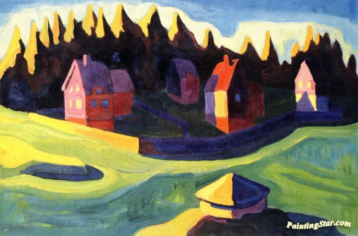 Erzgeburgshäuser, Art Painting by Karl Schmidt Rottluff