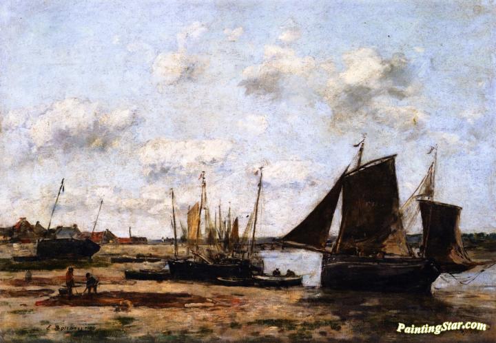 Etaples, Low Tide, Beached Boats, Art Painting by Eugène-Louis Boudin