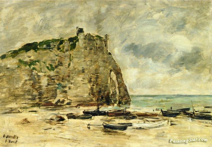 Etretat, Beached Boats and the Falaise d'Aval (study), Art Painting by Eugène-Louis Boudin