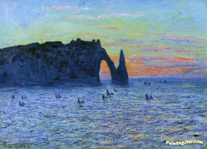 Etretat, the Needle Rock and the Porte d'Aval, Sunset, Art Painting by Claude Oscar Monet