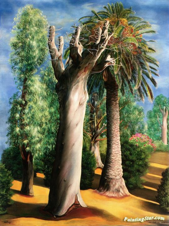 Eucalyptus and Palm Tree, Art Painting by Moise Kisling