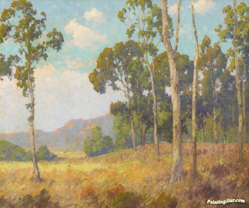 Eucalyptus Grove With Distant Sunlit Hills, Art Painting by Maurice Braun