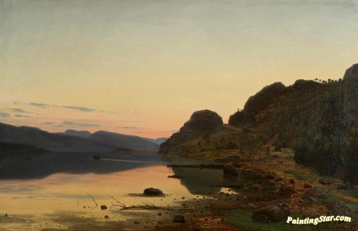Evening Mood, Skogsfjord, Mandal, Art Painting by Amaldus Clarin Nielsen