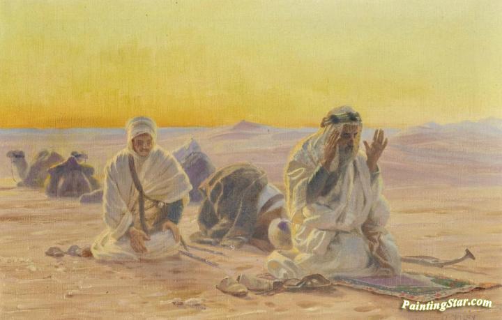 Evening Prayer in the Desert (Abendgebet in der Wüste), Art Painting by Otto Pilny
