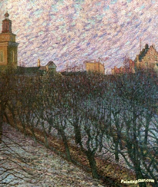 Evening Sun Over Maria Magdalena Church Stockholm, Art Painting by Nils Kreuger