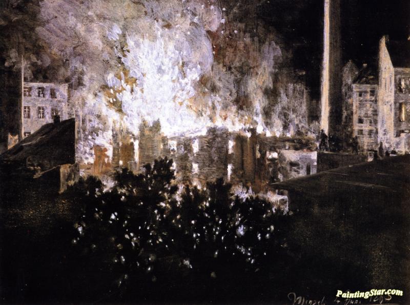Factory On Fire, Art Painting by Adolph von Menzel