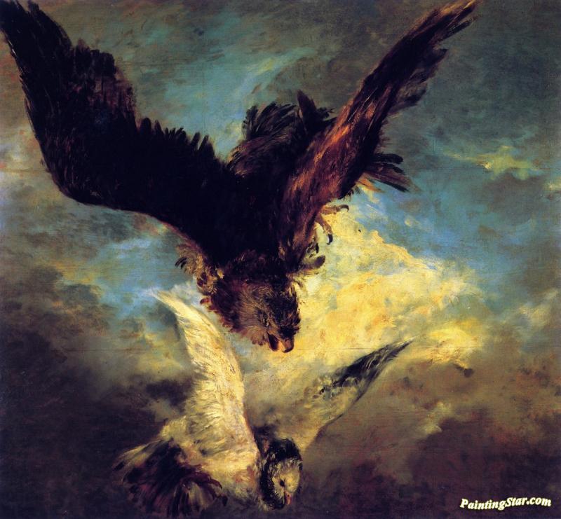 Falcon Swooping On A Dove, Art Painting by Adolph von Menzel