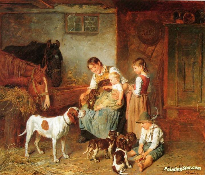 Family in a barn, Art Painting by Adolf Eberle
