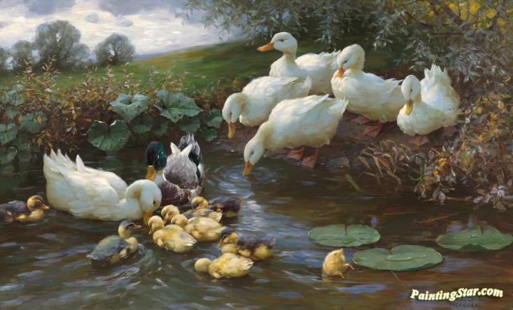 Family of ducks at the water, Art Painting by Alexander Koester