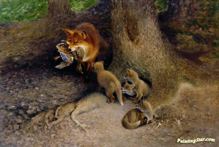 Family Of Foxes By Their Den, Art Painting by Bruno Liljefors