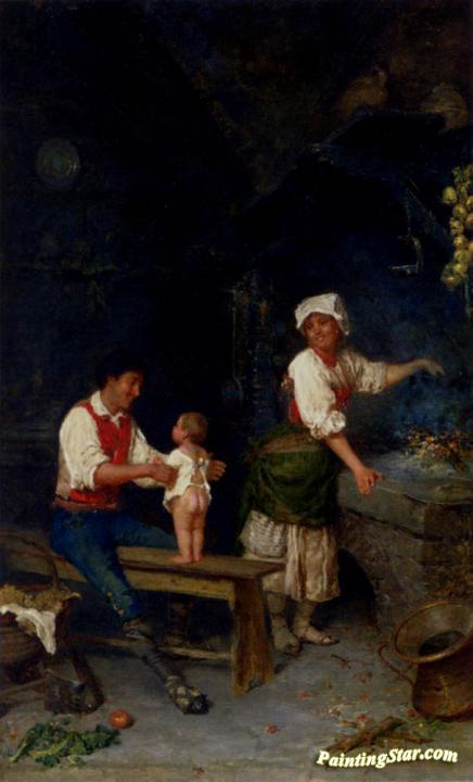 Family Time in the Kitchen, Art Painting by Francesco Bergamini