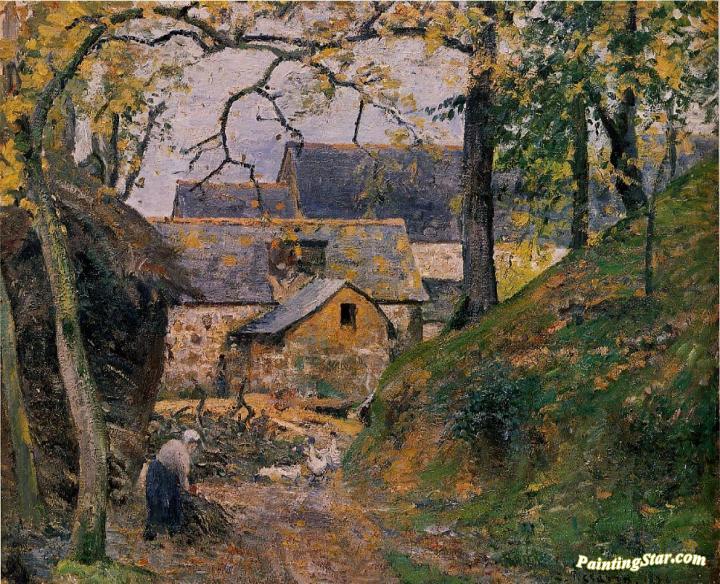Farm at Montfoucault, Art Painting by Camille Pissarro
