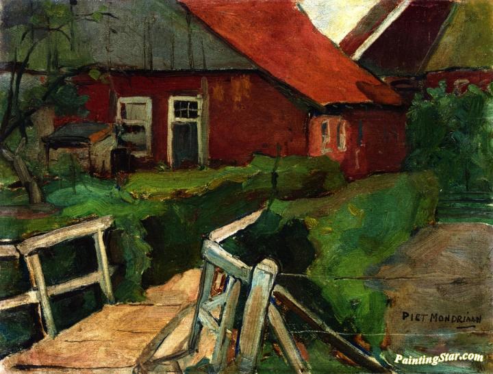 Farm Building with Bridge, Art Painting by Piet Mondrian