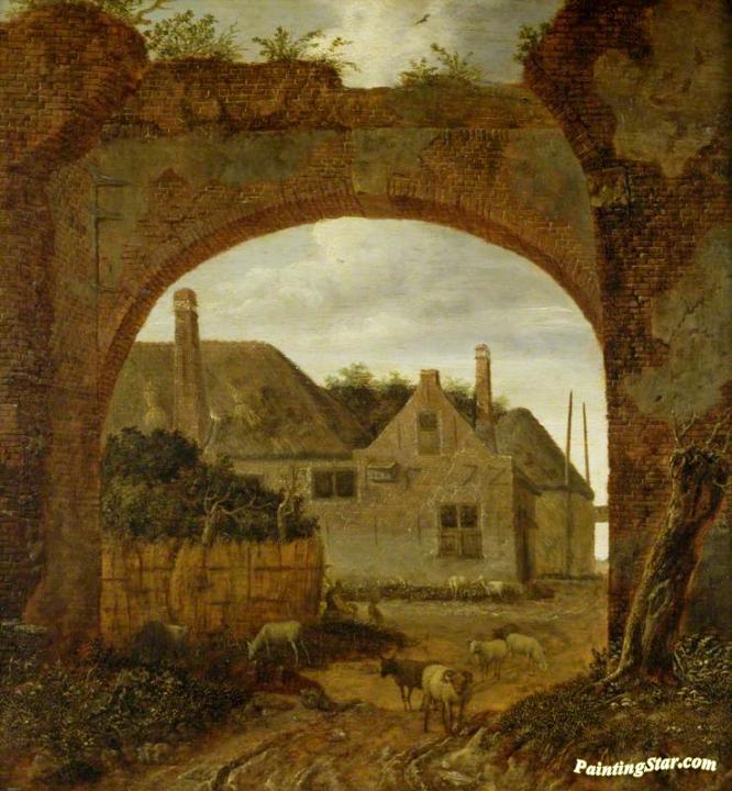 Farm Buildings Seen Through An Archway, Art Painting by Jan van der Heyden