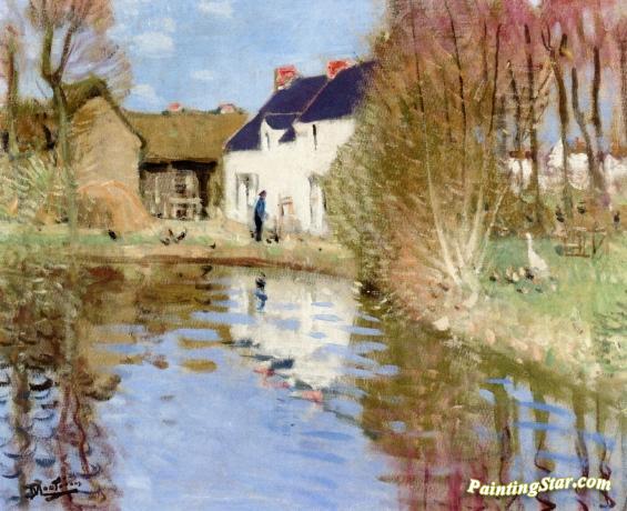 Farm by the Water, Art Painting by Pierre Eugène Montézin