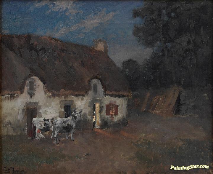 Farm in Brittany, Evening, Art Painting by Fritz Thaulow