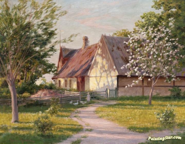 Farm with blooming apple trees, Art Painting by Johan Krouthén