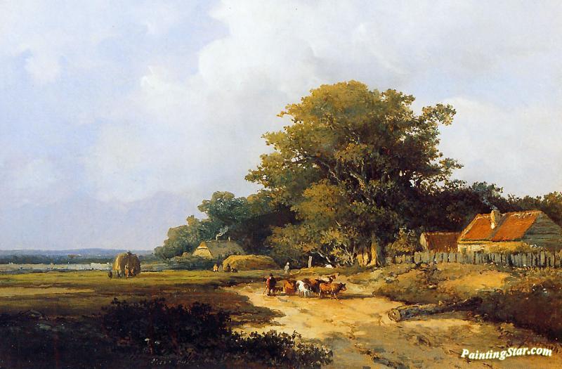 Farmer With Herd On Countryroad, Art Painting by Johan Hendrik Weissenbruch