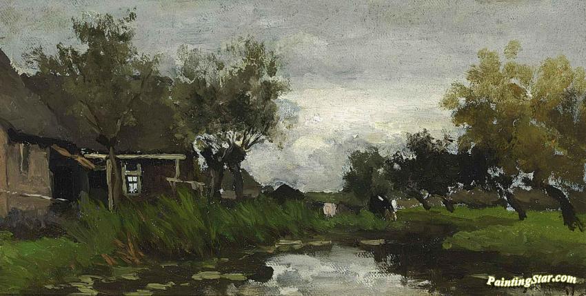 Farmhouses On The Waterfront, Art Painting by Jan Weissenbruch