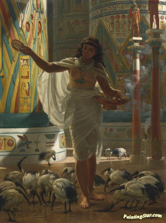 Feeding The Scared Ibis In The Halls Of Karnac, Art Painting by Sir Edward John Poynter