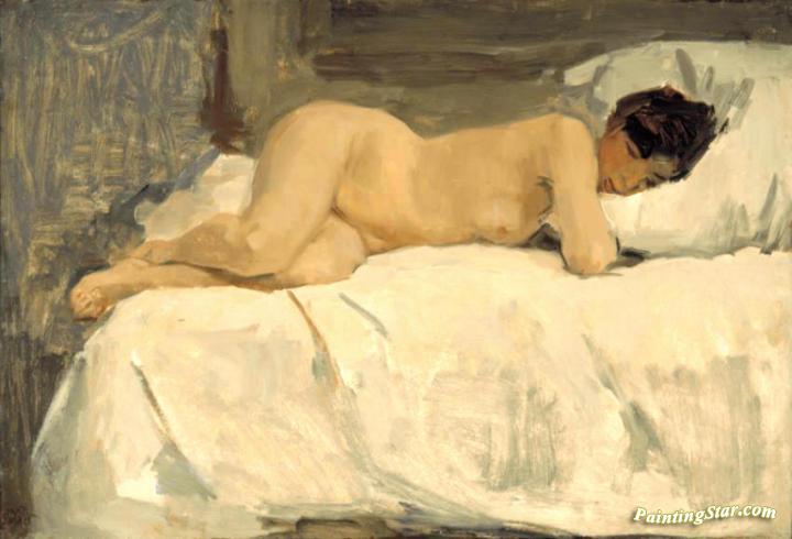 Female Nude lying on a Sofa, Art Painting by Isaac Israels
