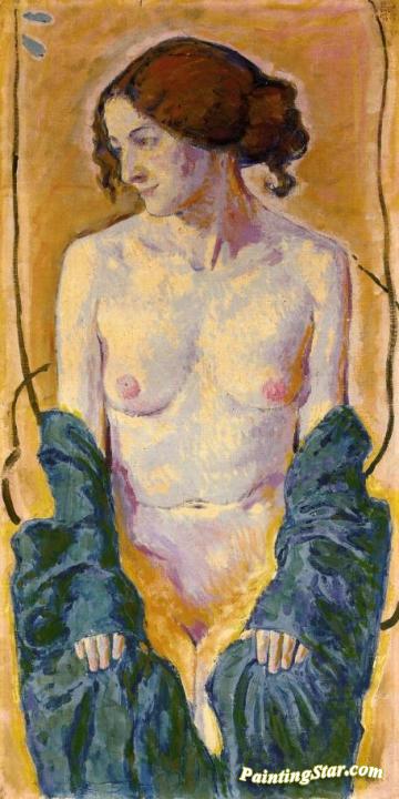 Female Nude with Blue Shawl, Art Painting by Koloman Moser