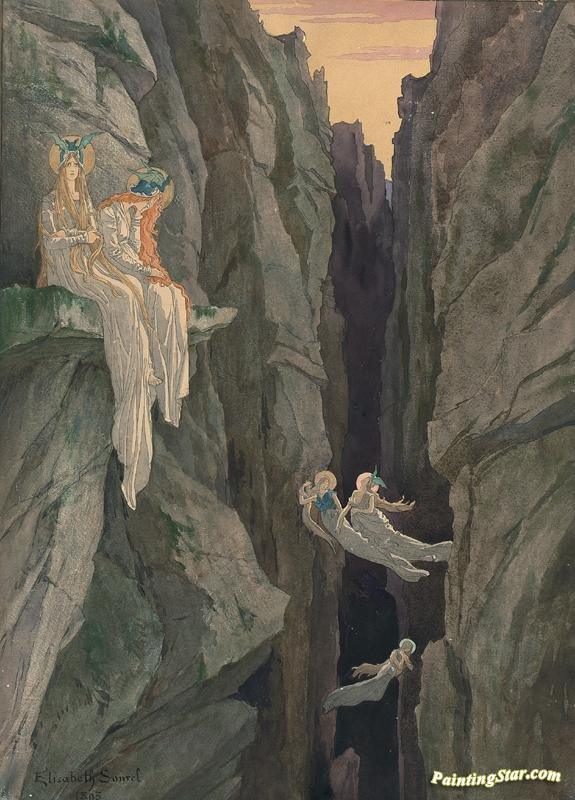 Female Spirits In A Canyon, Art Painting by Elisabeth Sonrel