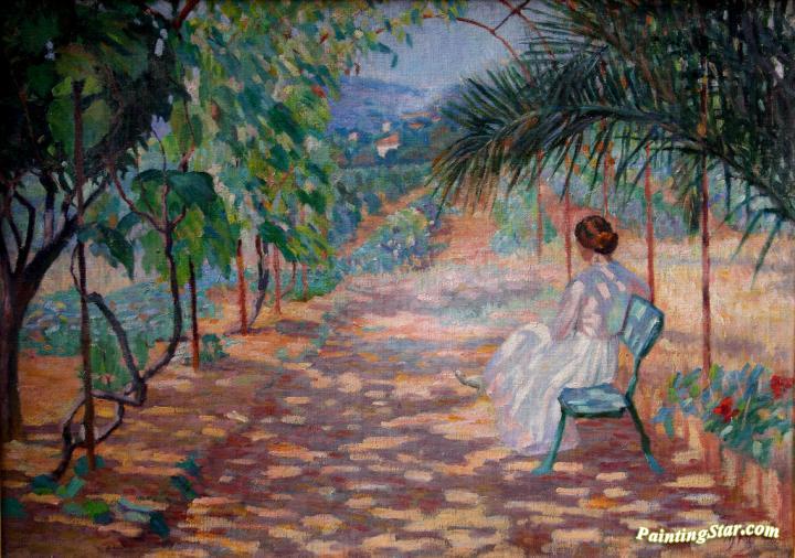 Femme assise dans une allée (Cagnes sur Mer), Art Painting by Georges Emile Lebacq