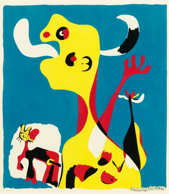 Femme Et Chien Devant La Lune, Art Painting by Joan Miró