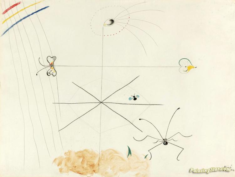 Femme Et Insectes, Art Painting by Joan Miró