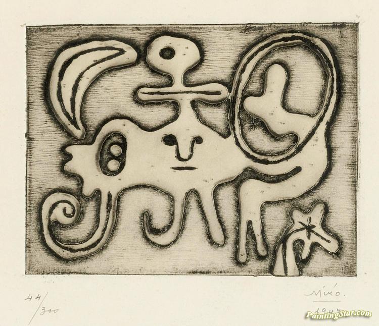 Femme Et Oiseau Devant La Lune, Art Painting by Joan Miró