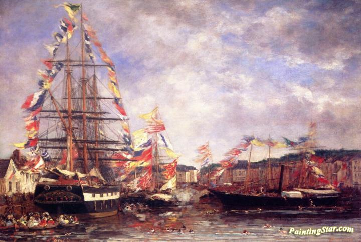 Festival in the Harbor of Honfleur, Art Painting by Eugène-Louis Boudin