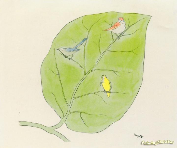 Feuille et oiseaux, Art Painting by Rene Magritte