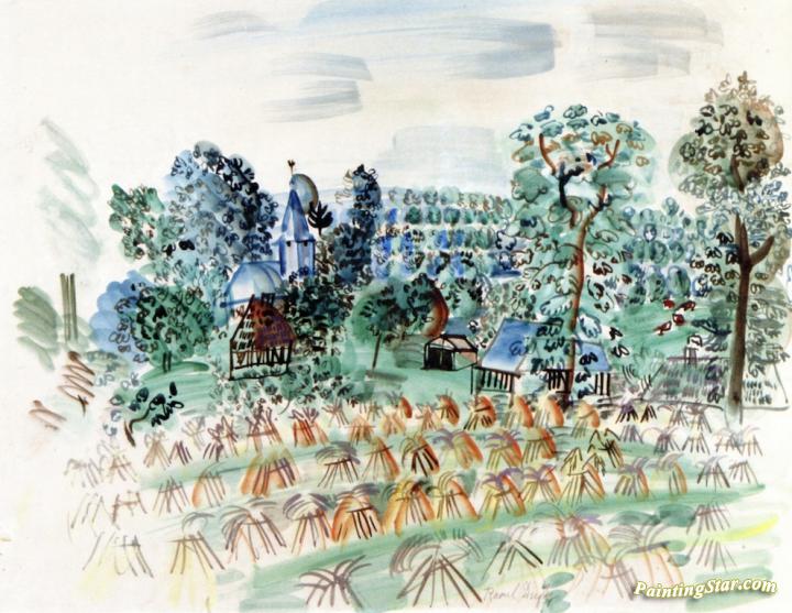 Field of Wheat near a Small Village, Art Painting by Raoul Dufy